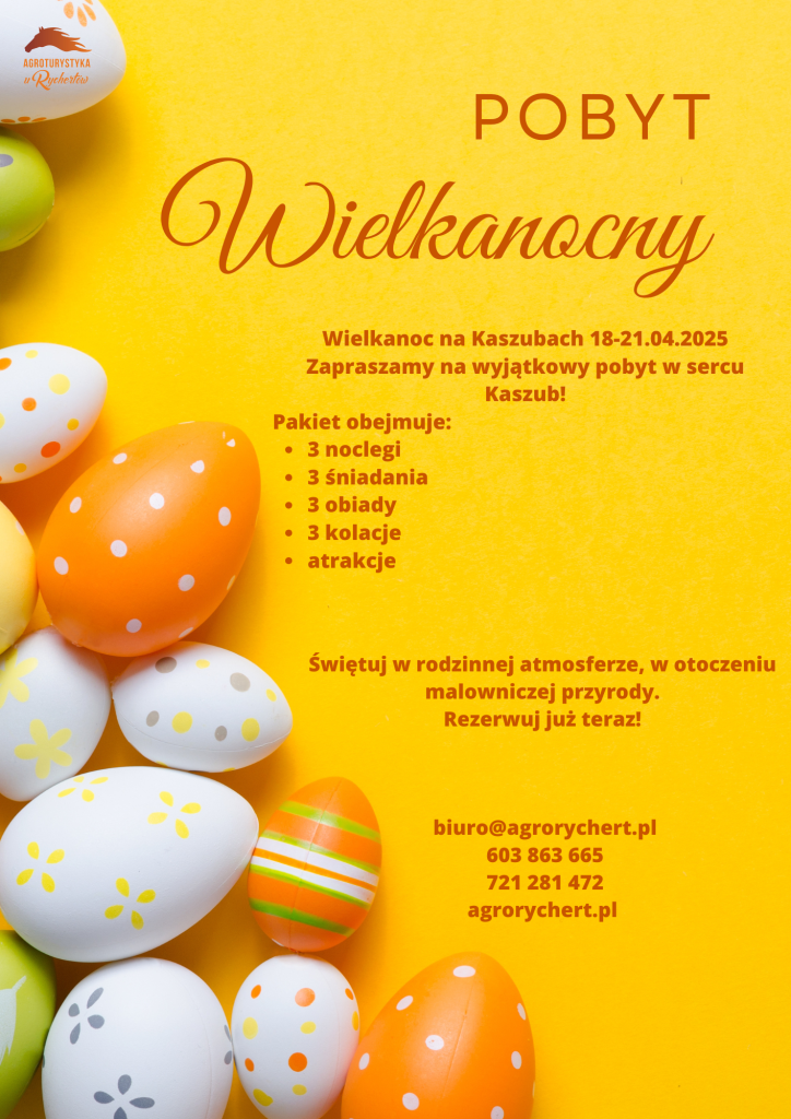 Kaszubska nazwa Wielkanocy to Jastrë. To najważniejsze święto w roku, kiedy przeżywamy radość ze zmartwychwstania Pańskiego. Ten czas kojarzy nam się również z nadejściem wyczekiwanej przez wszystkich wiosny. Święta wielkanocne „u Rychertów” obchodzone są zgodnie z kaszubską tradycją, dzięki czemu czas pobytu jest wypełniony licznymi atrakcjami.