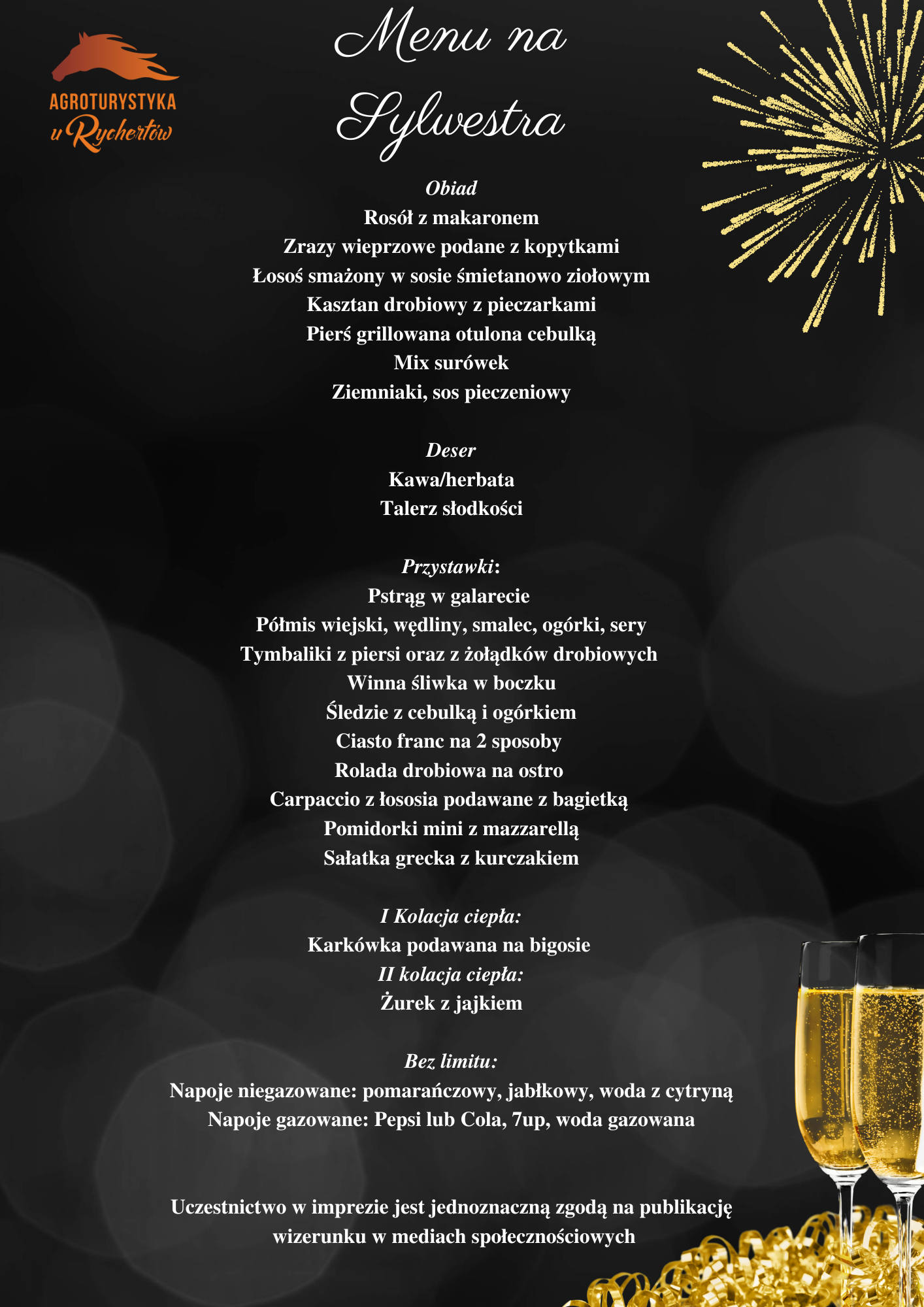 Szczegółowy program Sylwestra - dotyczy pobytu od 30.12.2024 do 01.01.2025